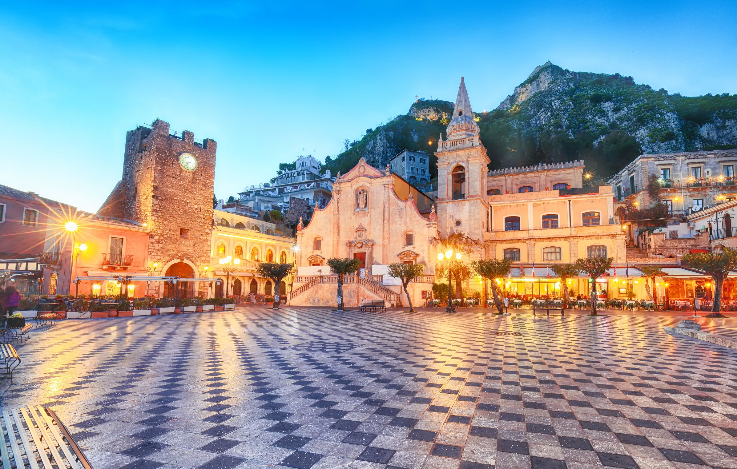 Anche Taormina (ME) è nella “Top 20” delle mete più amate dai turisti internazionali, portando in alto il nome del suo prezioso Teatro Antico, all’interno del Parco Archeologico di Naxos e Taormina, tra i luoghi più visitati dagli stranieri in Sicilia. Lasciarsi conquistare dal fascino di Taormina è molto facile: basta incamminarsi lungo Corso Umberto, varcando l’arco in pietra di Porta Messina, per sentirsi al centro di una movida frizzante, fatta di shopping artistico e caffè alla moda, che tuttavia non rinuncia alla bellezza scolpita nella pietra degli edifici e dei monumenti storici, come il Duomo di San Nicolò di Bari con accanto le Quattro Fontane. Insomma, una meta all’insegna dello stile mediterraneo e della “slow life” tanto amata dagli stranieri in Italia. I luoghi imperdibili di Taormina? Palazzo Corvaja, fortezza medievale adibita a galleria d’arte; la Naumachia, utilizzata dagli antichi romani per simulare battaglie navali; Piazza XXV Aprile, all’estremità opposta del Corso, verso Porta Catania, belvedere sull’Etna circondato dalle chiese di S. Agostino e S. Giuseppe, con la doppia scalinata verso la Torre dell’Orologio. A pochi minuti dalla piazza sorge La Villa, il celebre giardino ottocentesco di Taormina, tra i posti più belli e inaspettati, la cui storia è legata alla figura di Lady Florence Trevelyan insieme a quella di un altro simbolo locale: Isola Bella. L’isolotto, collegato alla terraferma da una sottile striscia di ghiaia, è oggi un centro di tutela ambientale gestito dall’Università di Catania.
