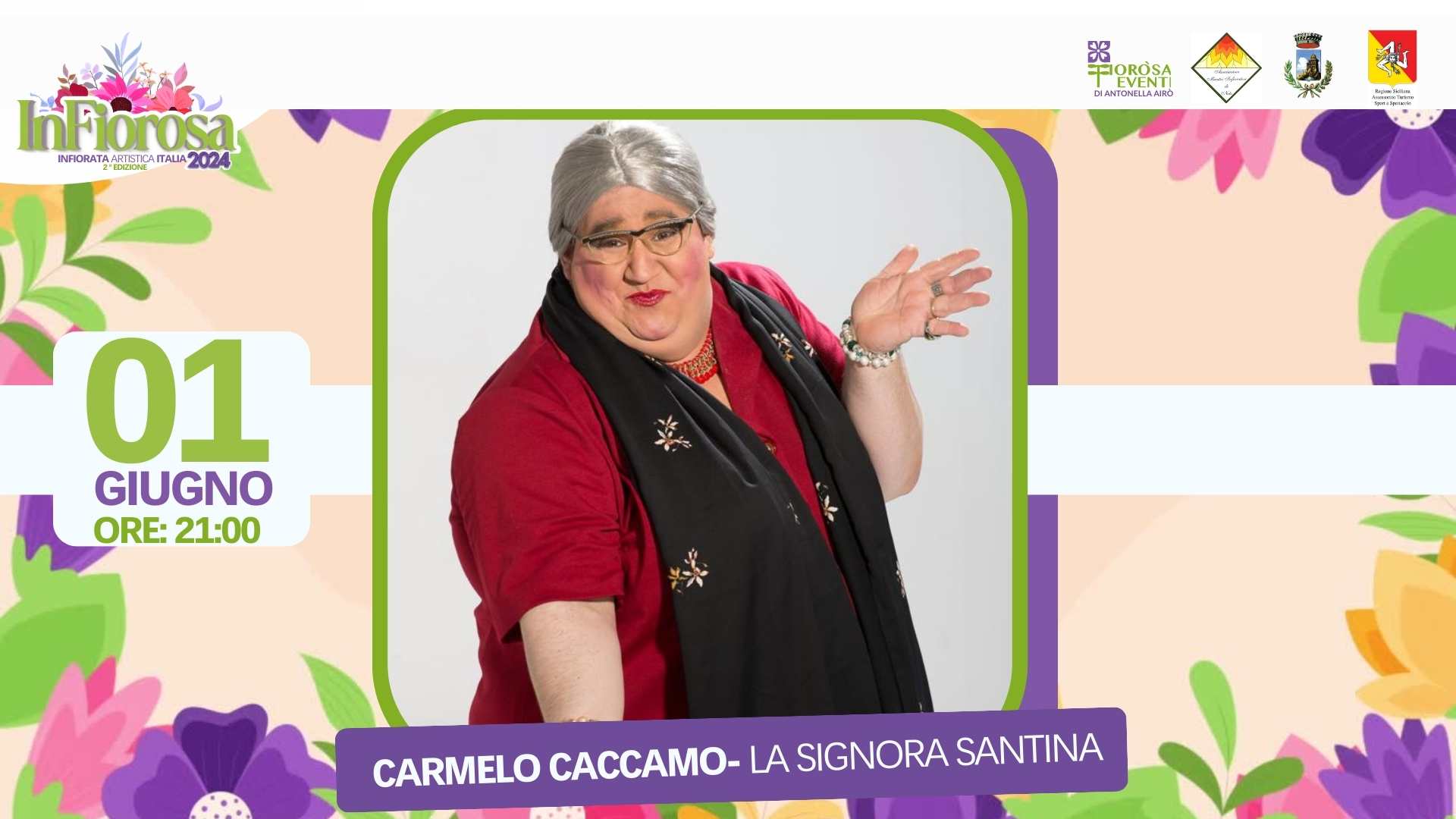 The evenings will be enriched by special artistic events: on Friday 31 May, Piazza Cavour will be transformed into a dance hall with Peppuccio Barravecchia; the same square will host Signora Santina (alias Carmelo Caccamo) directly from Catania on Saturday 1 June, while on Sunday 2 June it will be the turn of the Latin American music duo Los Locos.