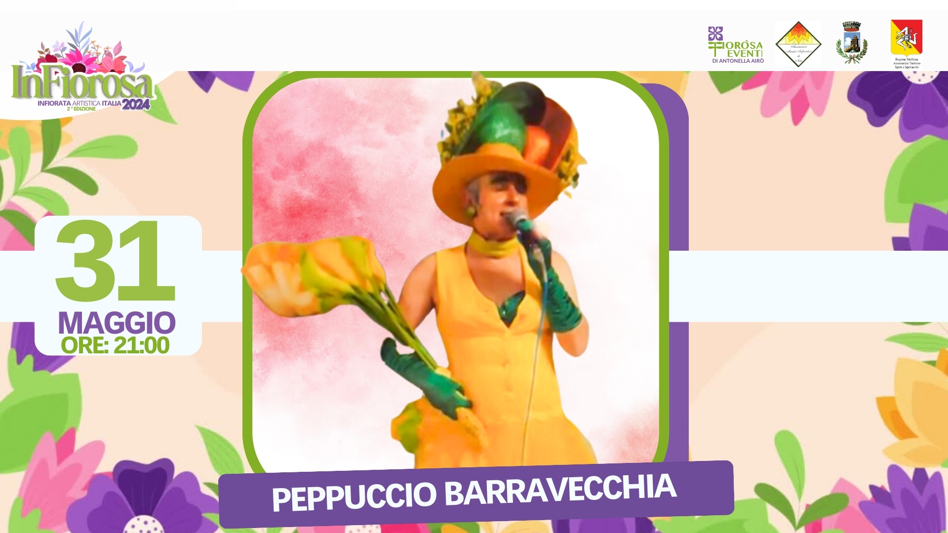 From Friday 31 May to Sunday 2 June 2024, Favara will host the second edition of “Infiorosa”, Italy’s artistic flower festival. The event will take place in two locations: Piazza Cavour and Piazza Vespri (also known as Piazza Madrice).