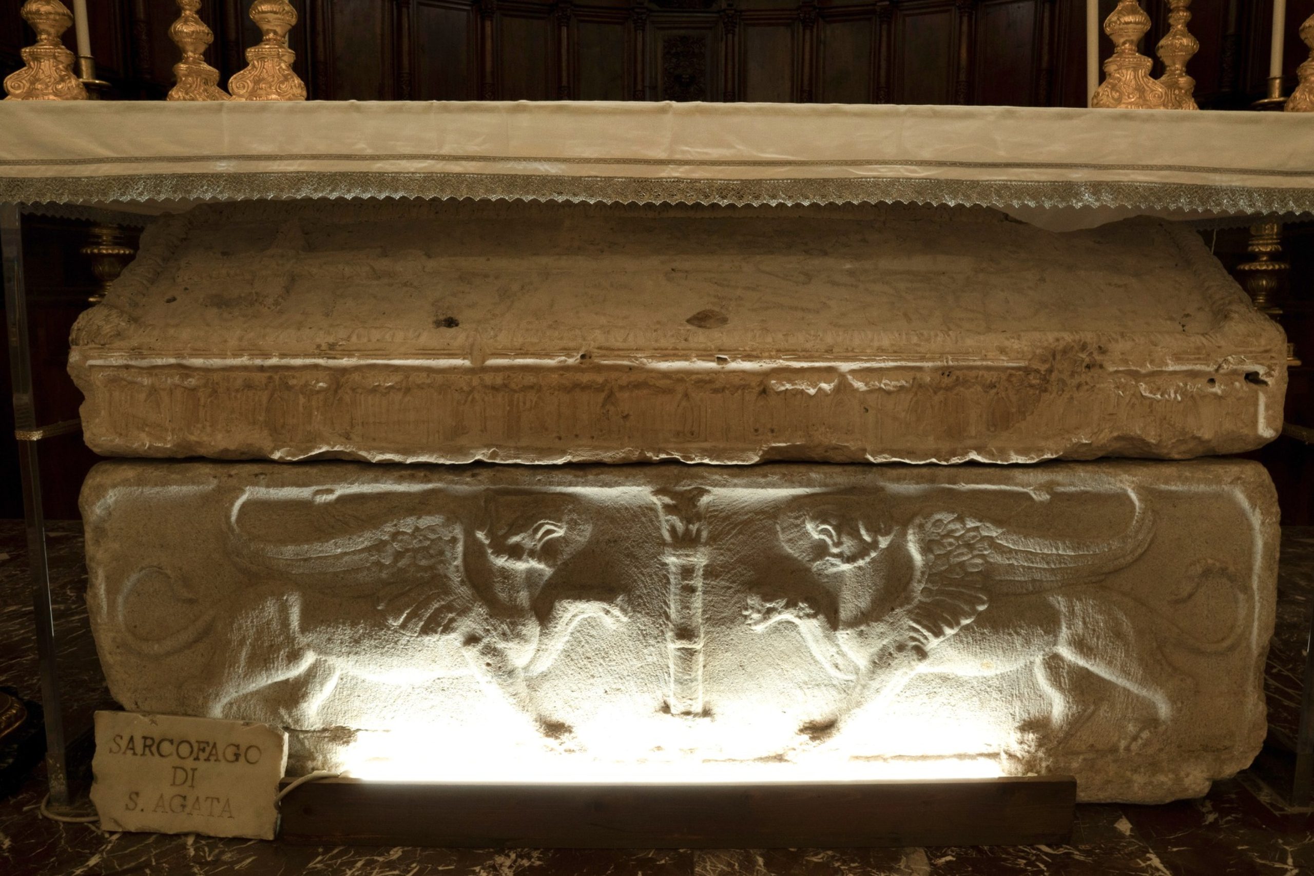 The journey ends with the Aghatine Triptych, a path rich in memory and spirituality linking Sant’Agata la Vetere, the first guardian of the relics, Sant’Agata alla Fornace and the Carcere, where medieval structures and Roman walls merge into a collective story of faith, martyrdom, and history.