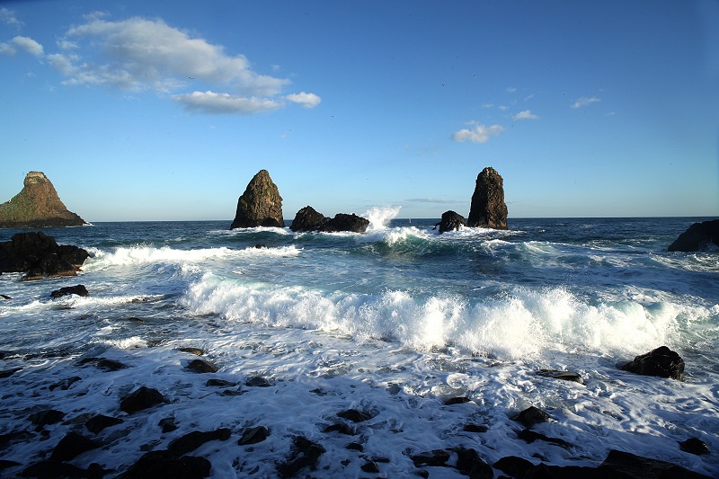 Los Faraglioni dei Ciclopi son el símbolo de Aci Trezza. Estas imponentes rocas basálticas emergen del mar en un paisaje único. Según la leyenda, Polifemo las lanzó contra Ulises durante su huida.