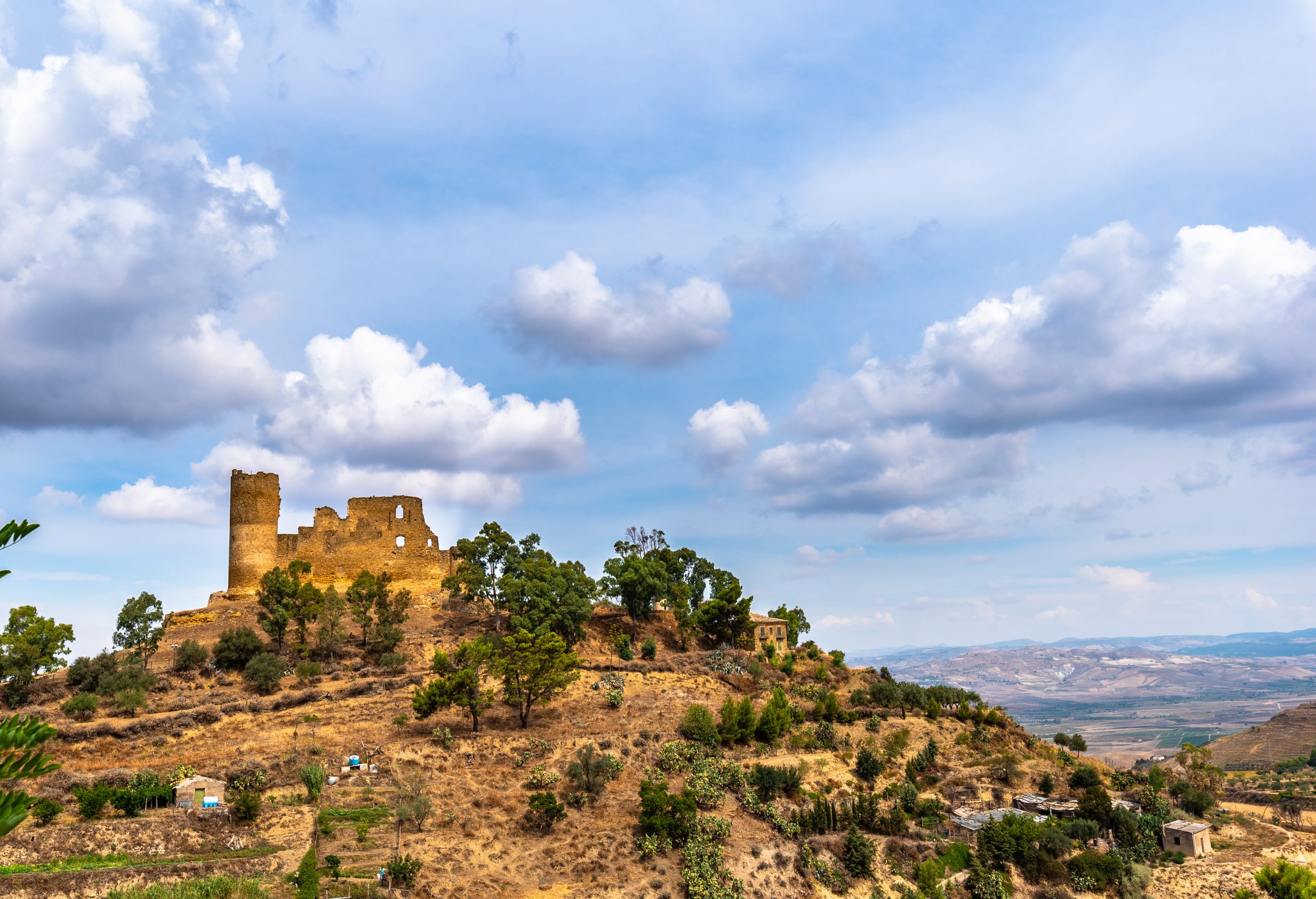Le château de Mazzarino, connu par les habitants sous le nom de « U Cannuni », est un symbole historique et visuel de la petite ville de Mazzarino, dans la province de Caltanissetta. Il s’élève sur une légère colline au nord du centre urbain, de manière si proéminente qu’il semble presque en contact avec le village, dominant les vallées environnantes des torrents Braemi et Disueri.